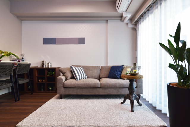 例えば、壁やソファ、カーテンといった面積の広いアイテムは、淡いベージュや明るいグレーでまとめます。