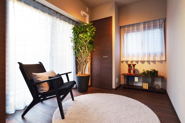 リビングの隅に読書用のパーソナルチェアを一つ置き、その周りだけラグの色を変えて空間を区切るだけでも特別な一角になります。