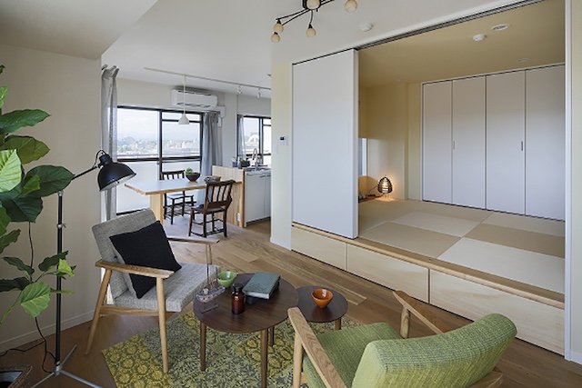 例えば、和紙のシェードを用いた照明器具や縁なしの琉球畳を取り入れてみてください。