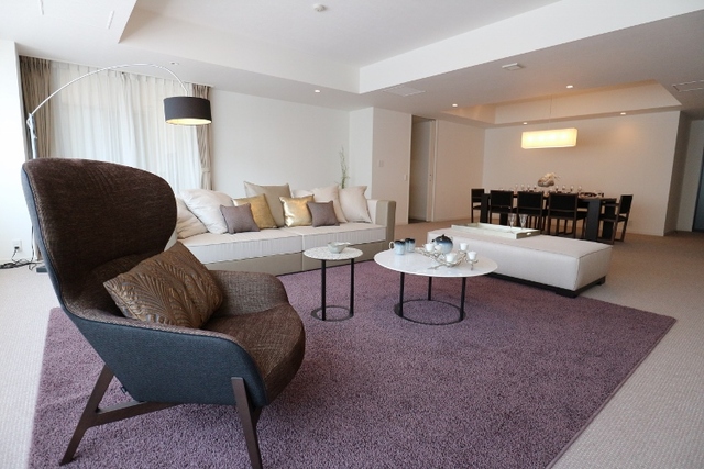 高級リビングテーブルを配置する際に余白を意識すると、部屋に広がりができ贅沢な空間に仕上がります。