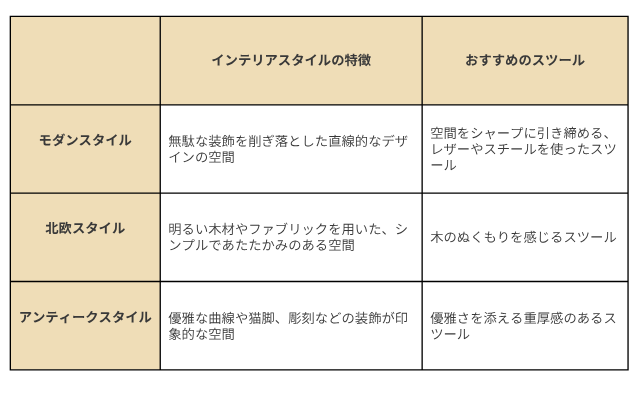 洗練された空間を作るには、インテリアスタイルに合わせてスツールを選ぶことが重要です。